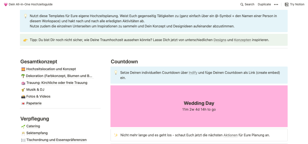 Digital Wedding Planner: All-in-One Hochzeitsguide - Notion Template